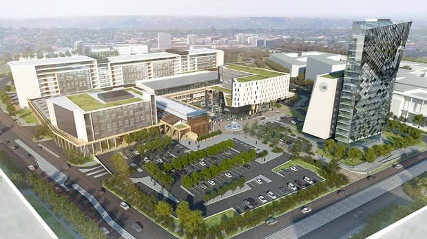 Das Projekt umfasst Bürotürme der Kategorie A, Luxuswohnungen, ein 5-Sterne-Hotel, medizinische und Wellness-Einrichtungen, Fitnessstudios, Restaurants und Plätze, die alle zu Fuß erreichbar sind. Die Anbindung an die Stadt erfolgt über Hauptverkehrsstraßen und öffentliche Verkehrsmittel (einschließlich BRT- und Gautrain-Zubringerbusse). Gleichzeitig gibt es interne Fußgängerzonen, Landschaftsparks und „dritte Räume“, die die Menschen dazu ermutigen, ohne ständige Autonutzung zu leben, zu arbeiten, einzukaufen und Kontakte zu pflegen.