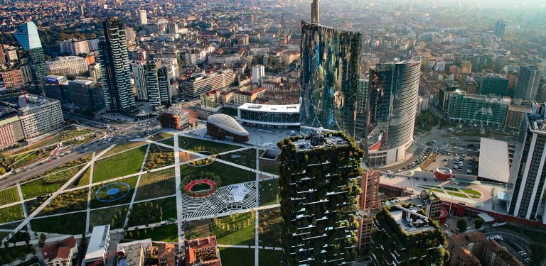 Der Bosco Verticale befindet sich in Mailand und ist ein gemischt genutztes Viertel mit Büros, Wohnungen, Einzelhandel und kulturellen Einrichtungen. Der Masterplan, an dem über 20 Architekturbüros beteiligt waren, darunter Stefano Boeri Architetti, Cesar Pelli und Kohn Pedersen Fox, legte den Schwerpunkt auf die Schaffung großzügiger öffentlicher und grüner Flächen. Das Herzstück des Clusters, das 2014 eingeweiht wurde, ist der Bosco Verticale (Vertikaler Wald), zwei Wohntürme (110 m und 76 m), die von Stefano Boeri Architetti als Prototyp für die Wiederaufforstung der Metropole und ein neues architektonisches Format entworfen wurden, das sich auf die Koexistenz von Mensch und Natur konzentriert.