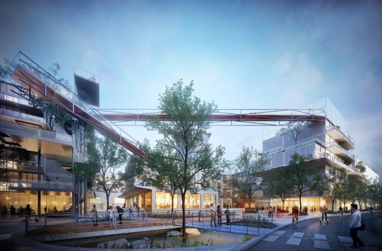 Das Projekt ist als umweltfreundliche, energieautarke Brachflächenerneuerung konzipiert, bei der wichtige Industriestrukturen erhalten bleiben und gleichzeitig Emissionen und Ressourcenverbrauch reduziert werden. Die Materialien der Stadt sehen lokale erneuerbare Energien, hocheffiziente Gebäude, Abwasserrecycling für Bewässerung und Toiletten sowie eine kompakte, gemischte Nutzung vor, bei der Fußgänger und Radfahrer Vorrang vor Autos haben und ein Logistikzentrum den Schwerlastverkehr einschränkt.