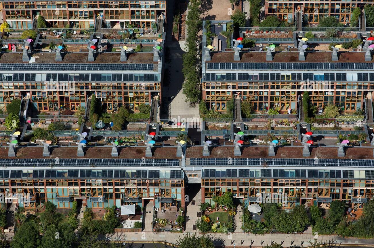 BedZED (Beddington Zero Energy Development), en Londres, es la primera comunidad sostenible de uso mixto a gran escala del Reino Unido, diseñada para lograr cero emisiones de carbono y promover al mismo tiempo una vida urbana sostenible. Comprende 100 viviendas, espacios de oficinas, instalaciones comunitarias y espacios de trabajo in situ, haciendo hincapié en la tecnología, la sostenibilidad y el diseño centrado en el ser humano.