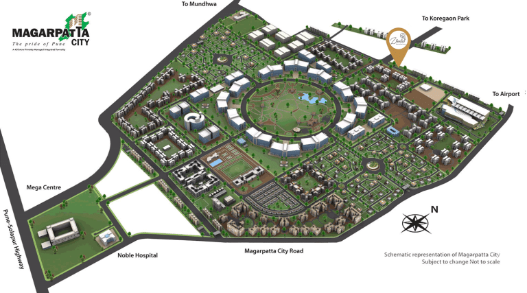 La planificación de Magarpatta fomenta la vida en comunidad, la seguridad y la calidad de vida con espacios recreativos accesibles, instituciones educativas e instalaciones sanitarias. Ofrece a los residentes un estilo de vida equilibrado y libre de contaminación, complementado con servicios culturales y sociales que mejoran el bienestar humano.