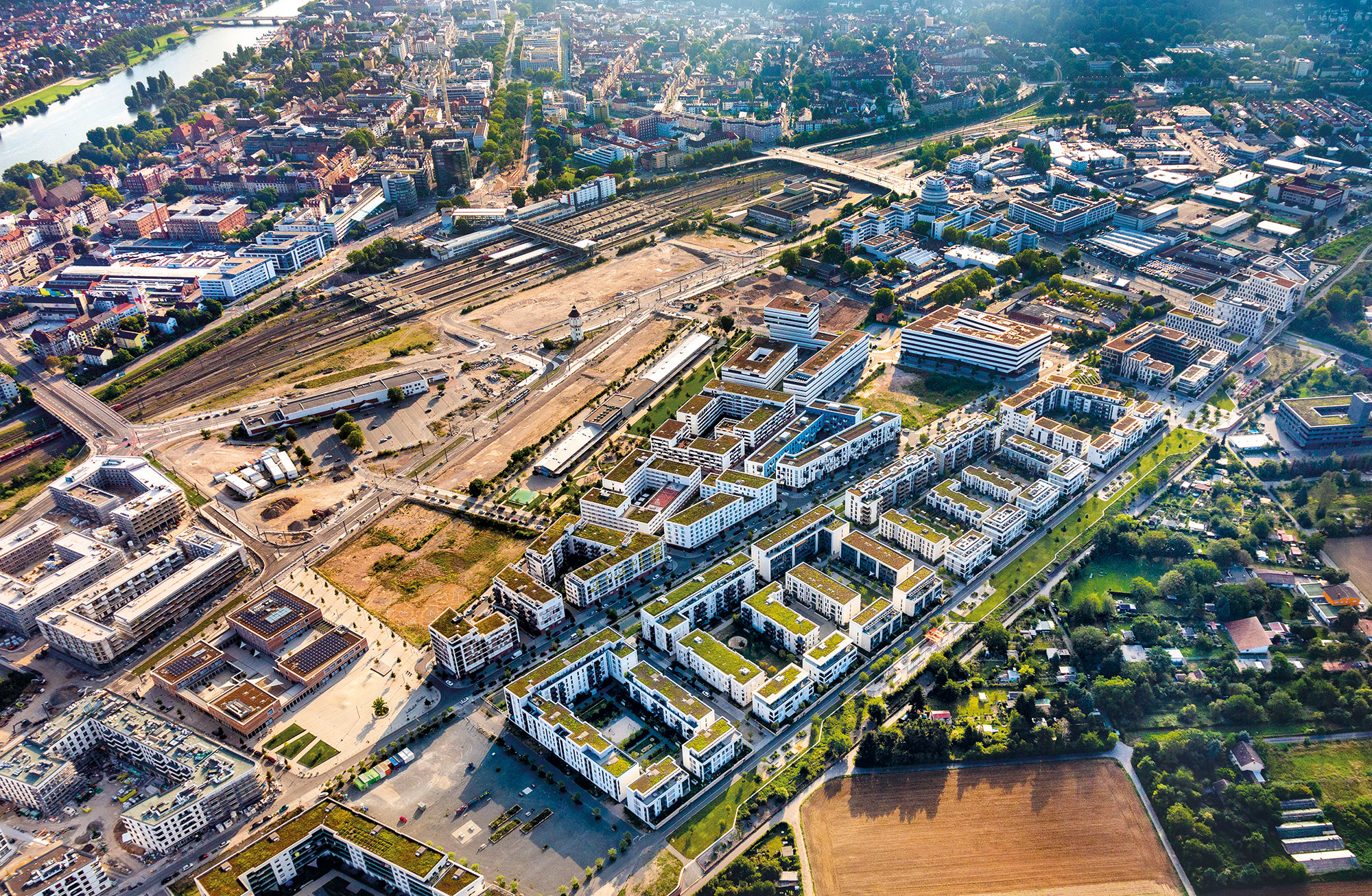 116ヘクタールの鉄道車両基地跡地に建設されたハイデルベルク・バーンシュタットは、ハイデルベルクで最も新しく、ドイツ最大級の都市プロジェクトです。持続可能な生活の旗手であり、世界最大の「パッシブハウス」居住区として知られ、気候に優しい建築の先導役となっています。