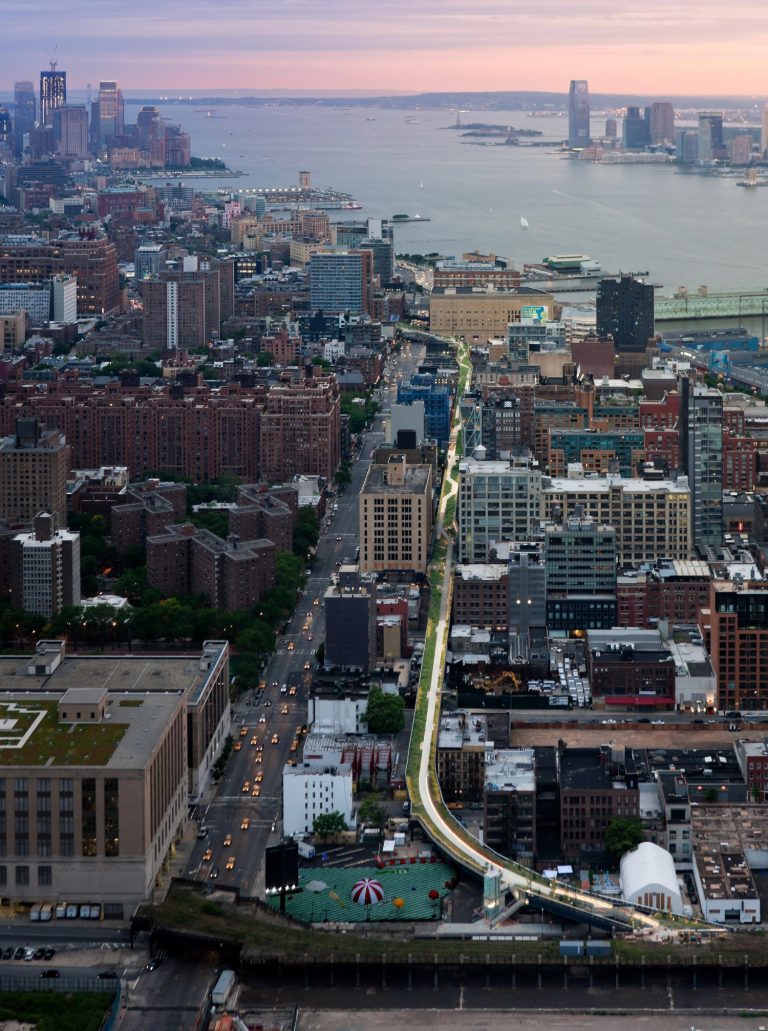 歩行者の体験と公共空間を優先したデザイン。ハイラインは、1.45マイルの高架歩行者空間と文化的空間を提供します。この地域は交通の便がよく(地下鉄7号線にアクセス可能)、パブリック・スクエア&ガーデンズとザ・シェッド・パフォーミング・アーツ・センターを核とし、高い歩行者ビリティを促進します。