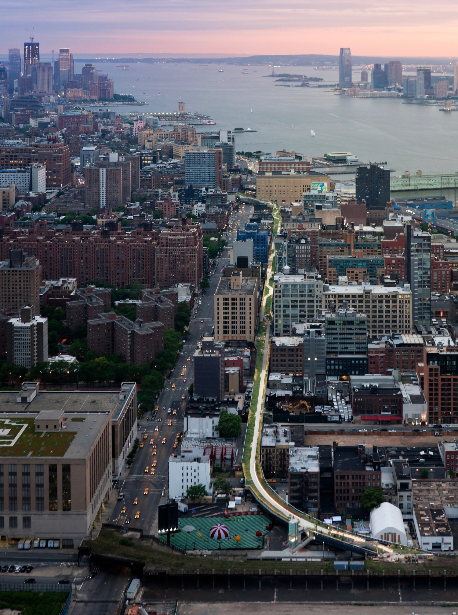 マンハッタンのウエストサイド、10番街と12番街の間の約30丁目から34丁目に位置するハドソンヤードの開発は、28エーカーの広さを誇り、現役のハドソンヤード鉄道操車場の上に建設されています。この地区は、商業用高層ビル、高級住宅タワー、高級小売モール(ザ・ショップス&レストランツ・アット・ハドソン・ヤーズ)、文化施設、公共広場を備えた複合施設です。この地区は、歴史的な貨物鉄道を再利用した全長1.45マイルのハイライン公園の南端と直結しています。