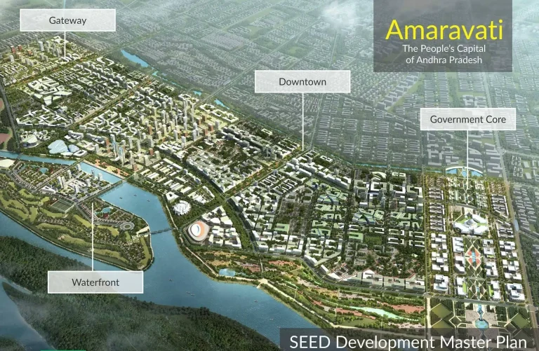 아마라바티는 인도 최초의 ‘인민 수도’로 구상되었으며, 독특한 토지 풀링 제도(LPS)에 따라 자발적으로 토지를 모은 수천 명의 농부들의 기부금으로 건설되었습니다. 이 참여형 모델은 도시 토지 개발에 대한 선구적인 접근 방식으로 전 세계적으로 인정받았습니다. 디자인 철학은 지속 가능성, 혁신, 포용성이라는 세 가지 기둥에 기반을 두고 있습니다.