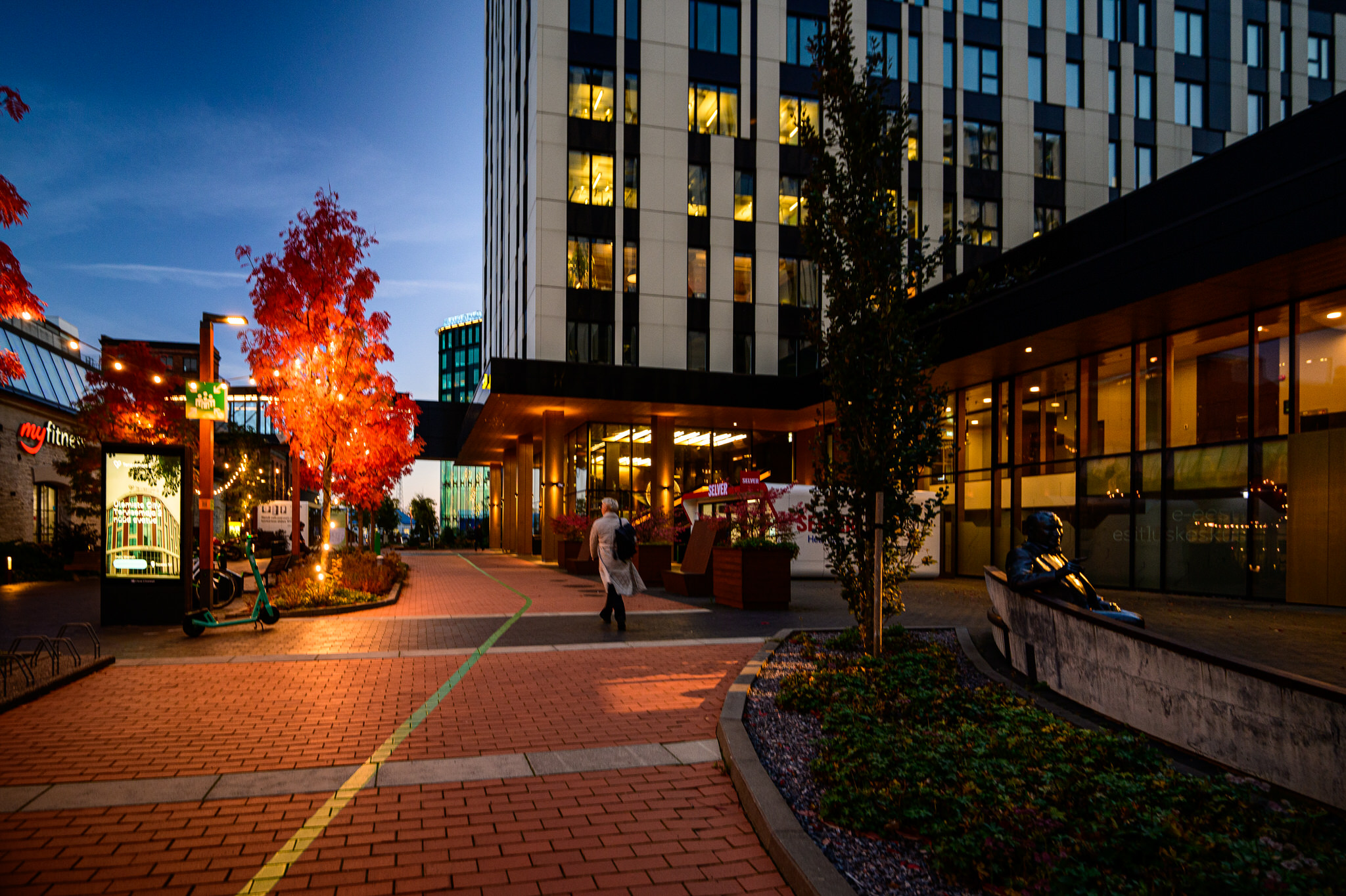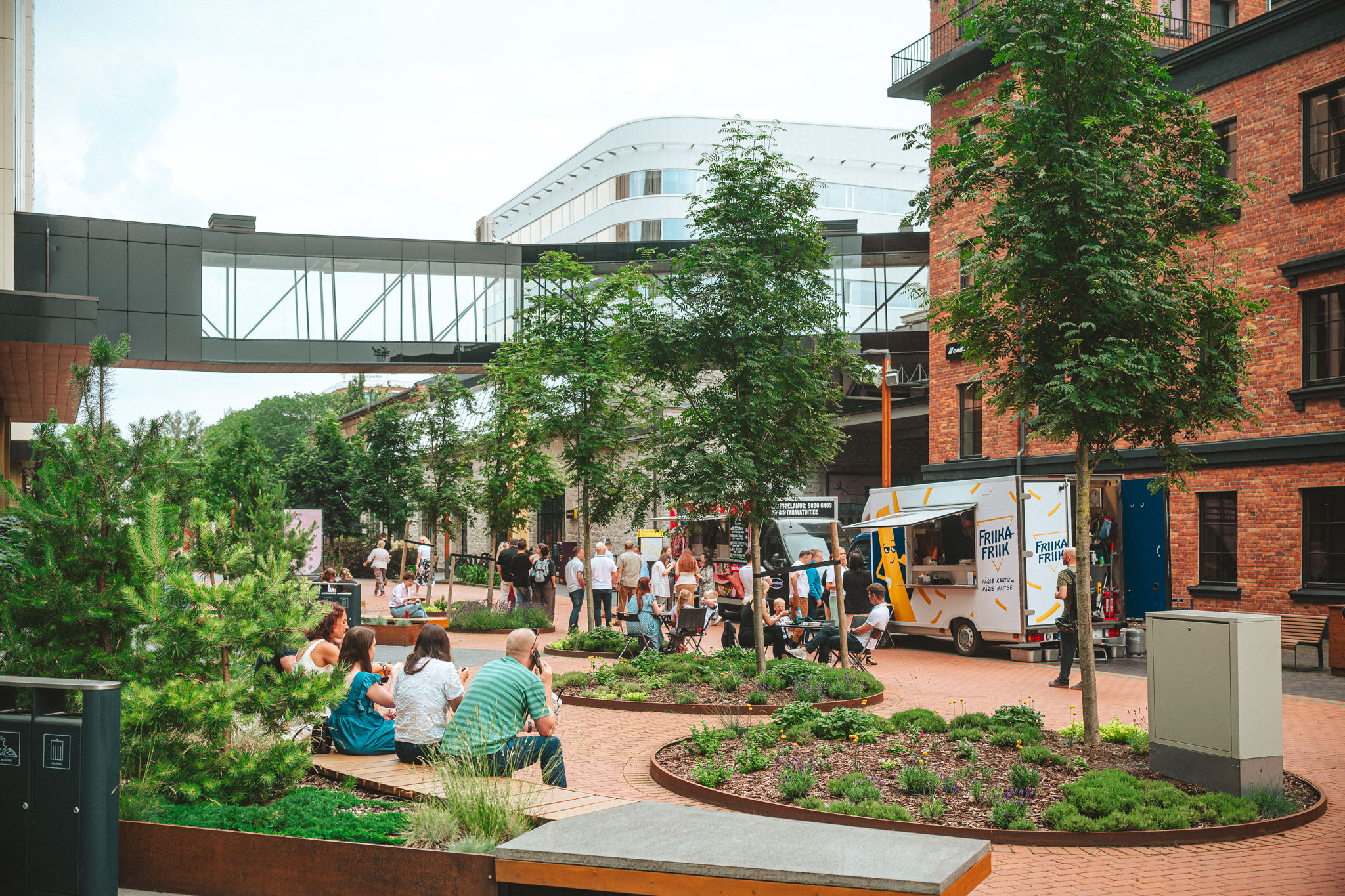 Ülemiste City aims to be a carbon-neutral, sustainable campus, using 100% green electricity in offices since 2020 and targeting full carbon neutrality by 2030. It promotes eco-friendly commuting, with three times more cyclists than Tallinn’s average. Its Green City platform gives tenants real-time data on electricity, water, and waste, helping track and improve environmental performance.