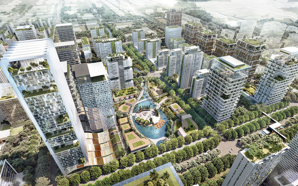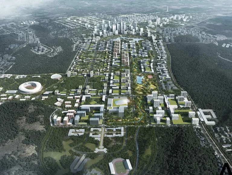 Мастер-план сохраняет более 60% территории города площадью 9 450 гектаров в качестве зеленого пространства. Такие ключевые объекты, как Центральный парк площадью 44,8 гектара, выполняют роль водосборников от наводнений, а при проектировании приоритет отдается немоторизованному транспорту и многофункциональным проектам, чтобы минимизировать воздействие на окружающую среду.