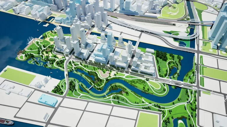 В центре внимания — устойчивая к будущему инфраструктура, созданная с использованием передовых инженерных и экологических технологий, включая интеллектуальную водораздельную систему с затопляемыми берегами рек, устойчивый городской дренаж (SUDS) и решения для централизованного энергоснабжения. Руководствуясь климатически позитивными стандартами проектирования, он использует цифровое моделирование для создания жизнестойкого, готового к будущему района.