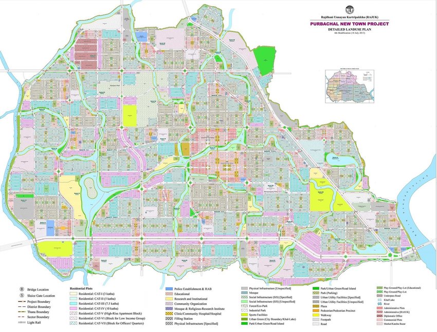 ได้รับการออกแบบให้เป็นเมืองที่สามารถพึ่งพาตนเองได้เพื่อยกระดับคุณภาพชีวิตและลดความแออัดของธากา แผนนี้ประกอบด้วยสิ่งอำนวยความสะดวกที่จำเป็น เช่น โรงเรียน โรงพยาบาล และพื้นที่พักผ่อนหย่อนใจ และใช้เครือข่ายถนนสายหลักเพื่อการเชื่อมต่อ อย่างไรก็ตาม การศึกษาเปรียบเทียบชี้ให้เห็นว่าแผนนี้อาจพลาดโอกาสในการเพิ่มความหลากหลายด้านความหนาแน่น การผสมผสานทางสังคม และการบูรณาการระบบขนส่งมวลชน ซึ่งเป็นกุญแจสำคัญสู่การออกแบบเมืองที่น่าอยู่และเน้นพลเมืองเป็นศูนย์กลาง